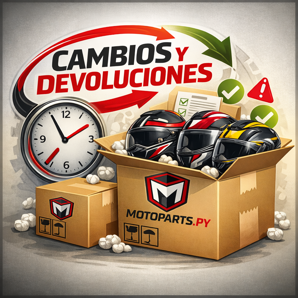Cascos MT Helmets originales y de calidad. Si no te queda, podés solicitar cambio por talla según nuestra política. Enviamos a todo Paraguay y calculás costo y tiempo en el checkout.